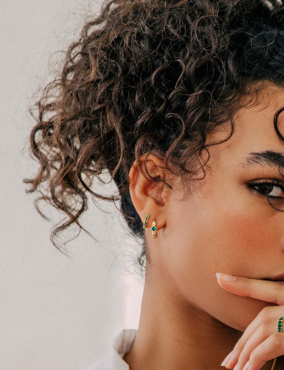 All delicately designed to hug your ears all day long. Choose from our collection of signature coloured pendants or create your perfect ear stack with our detailed huggies. We love matching and mis-matching our styles to create new looks and keep things exciting.