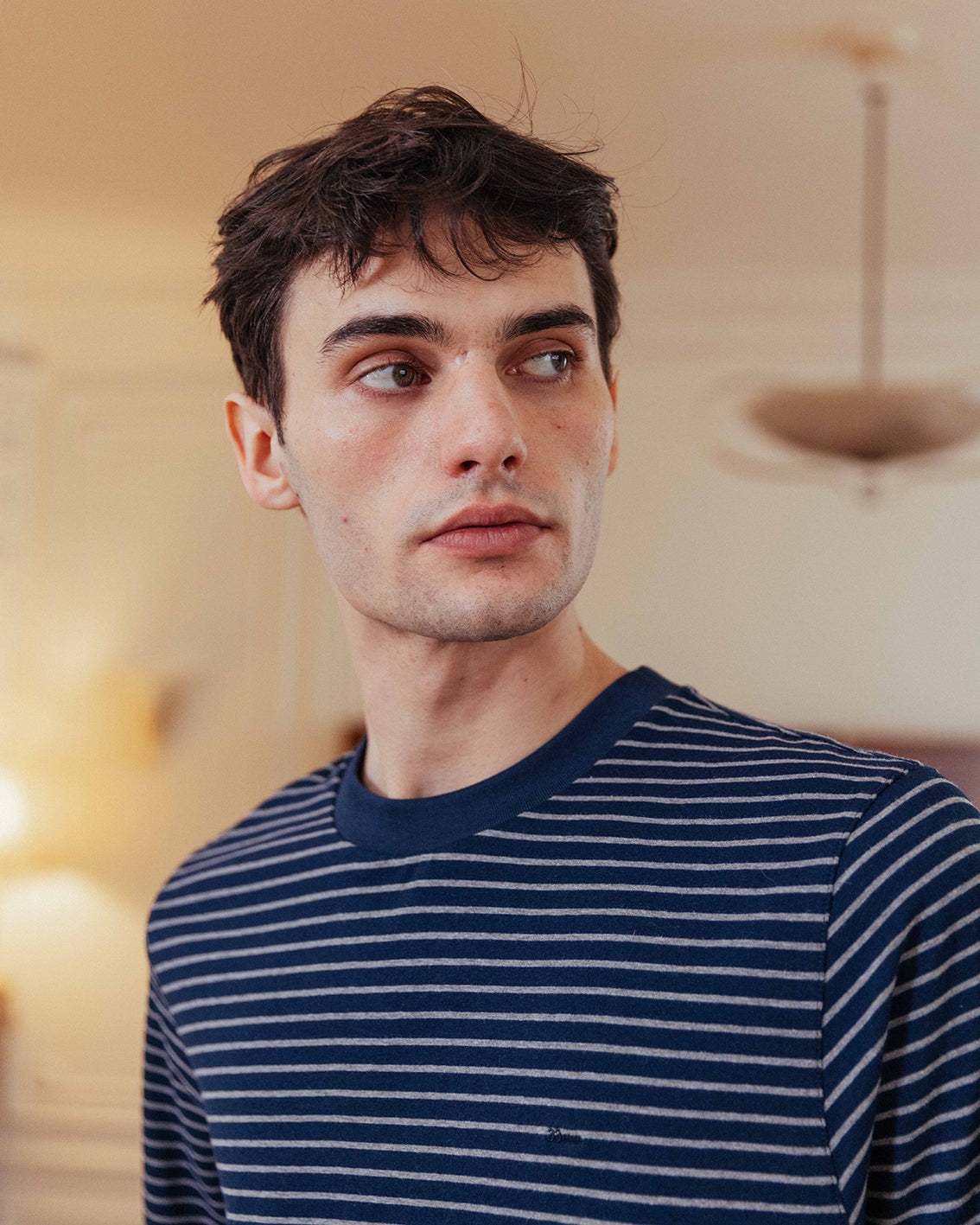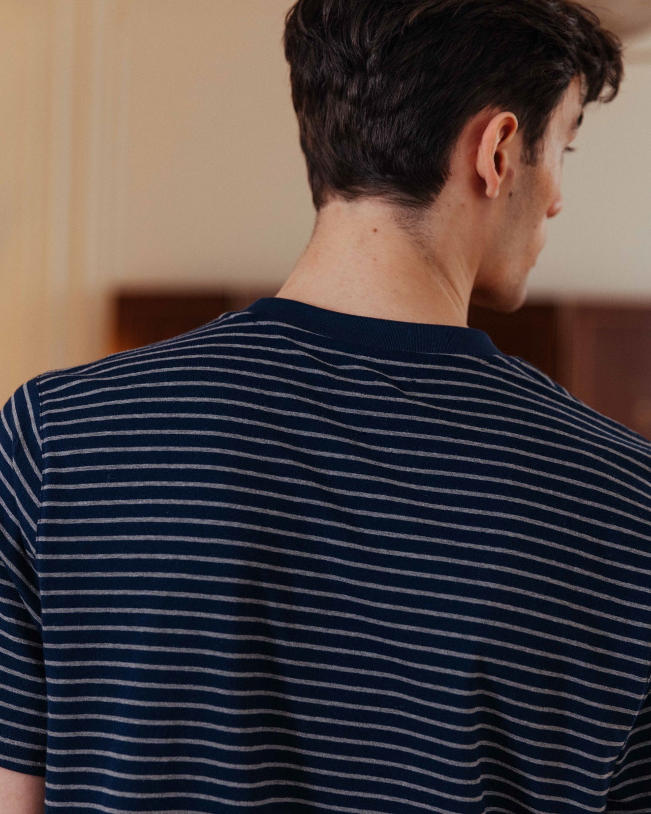 • Contrast navy crew neck