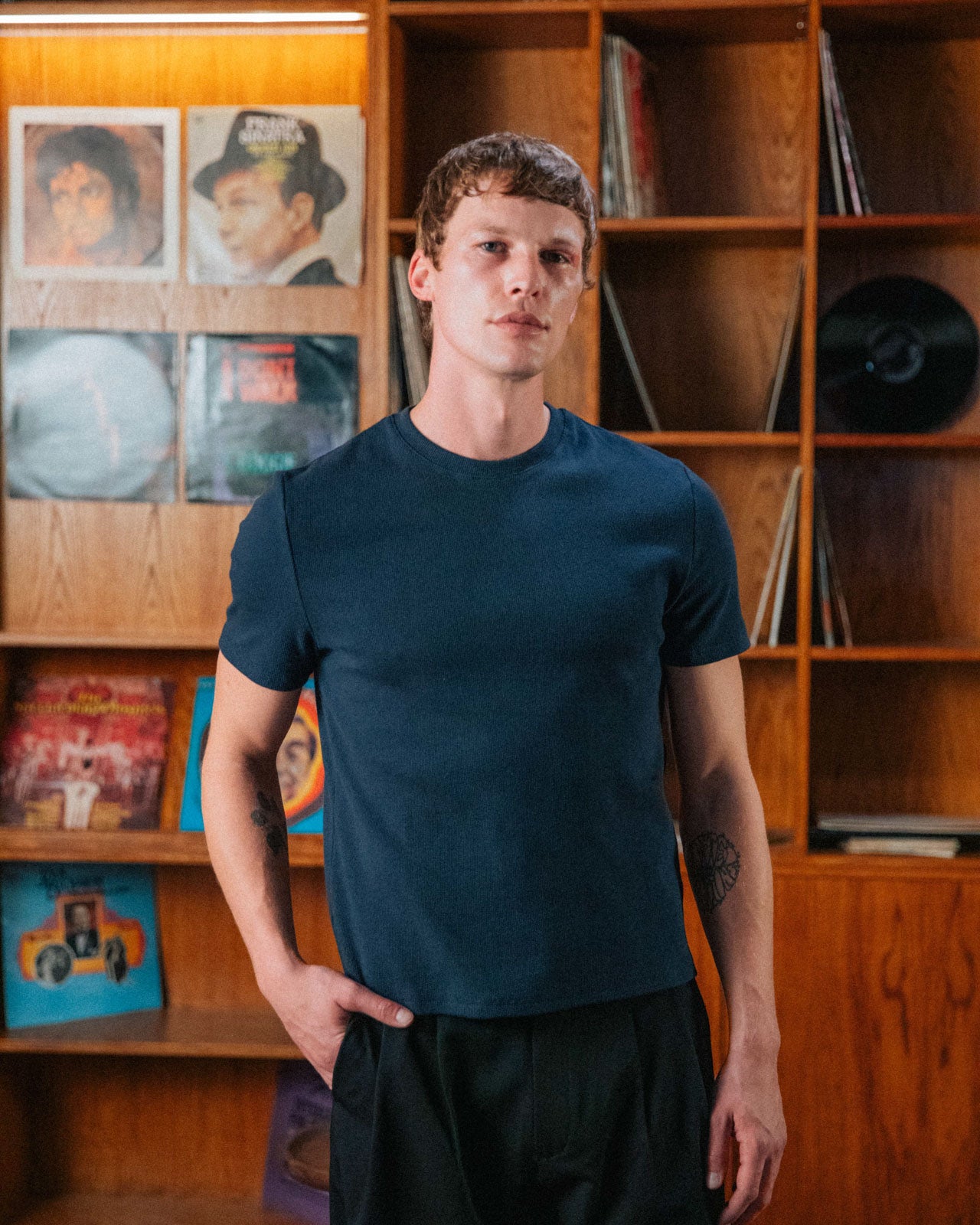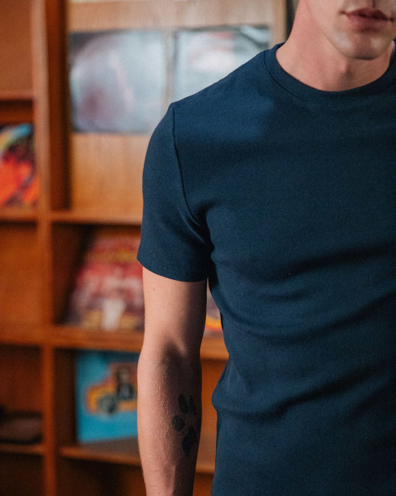 We’ve taken best-selling Brando and deepened its intrigue. Bernard’s ribbed texture and 280gsm cotton blend create a second skin, whilst replicating the fit of Brando. Either layer it up, or let it speak for itself.