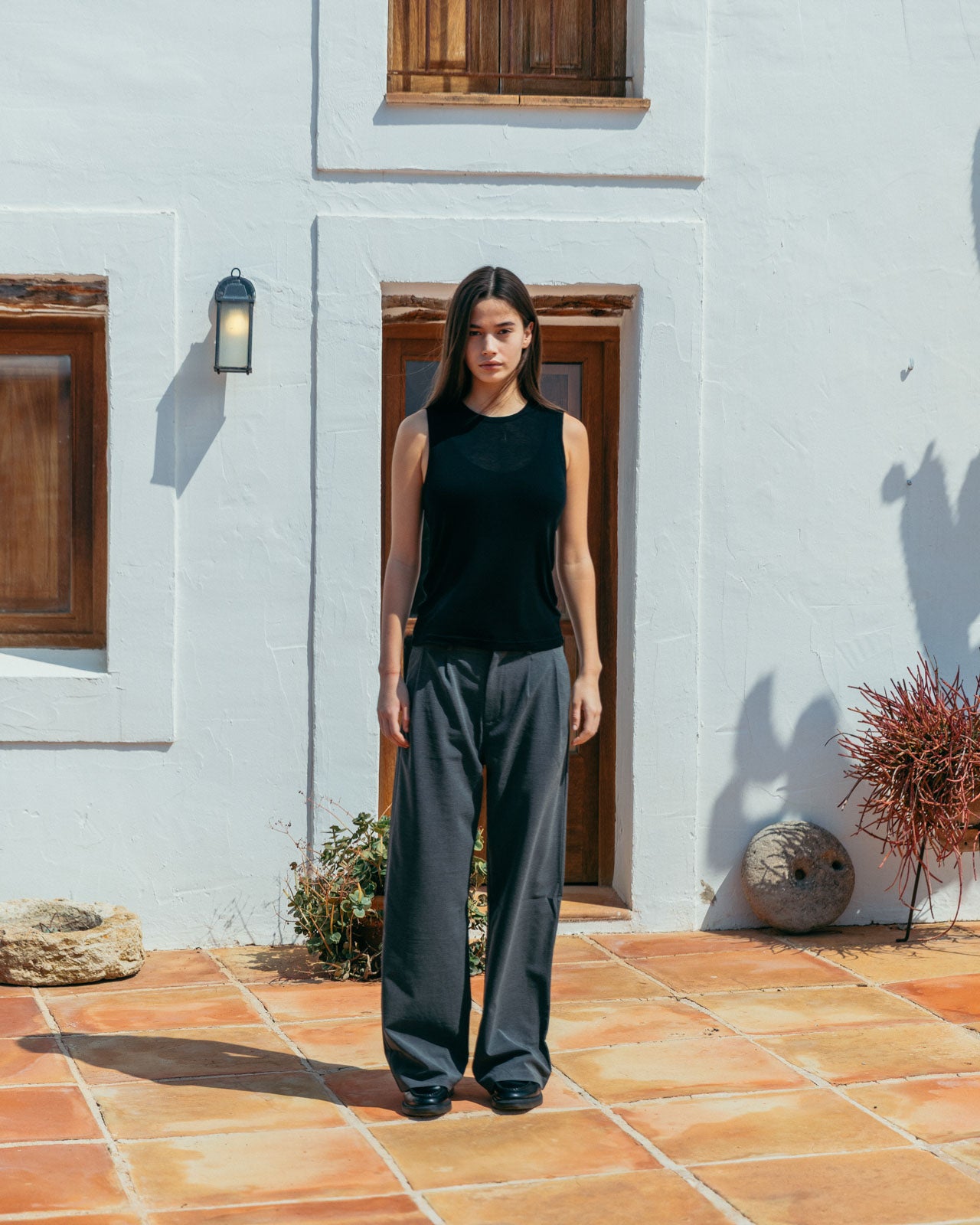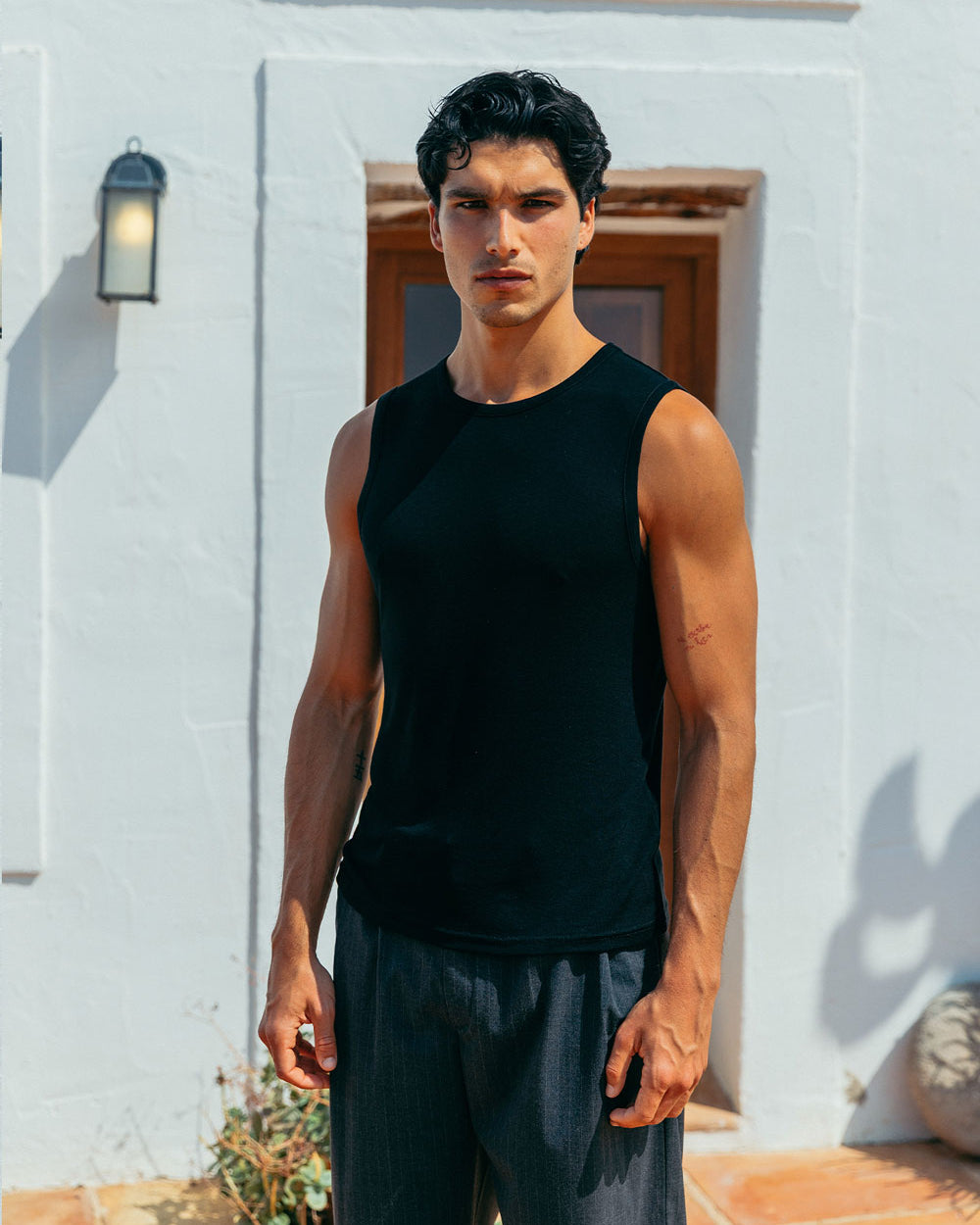 A tencel-blend lightweight tank, for movement, fluidity and comfort. A more straight cut than our other tanks, but with even more stretch.