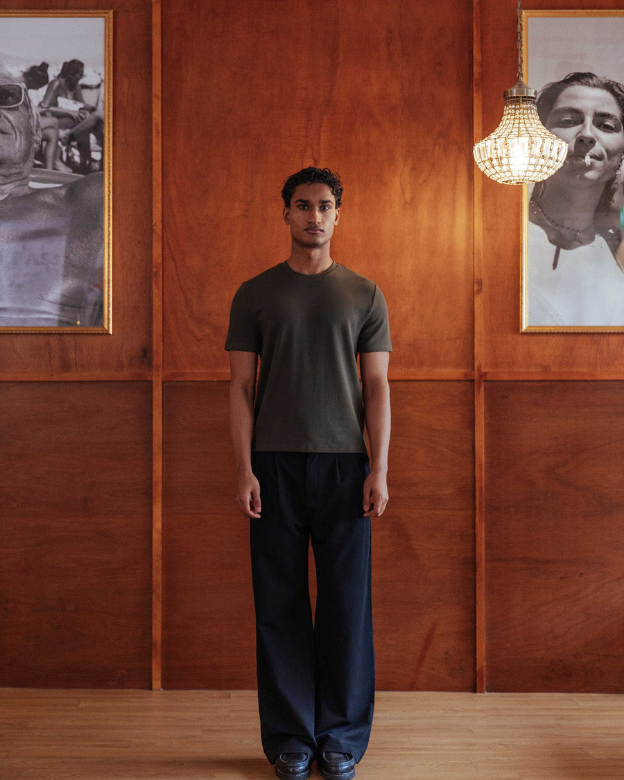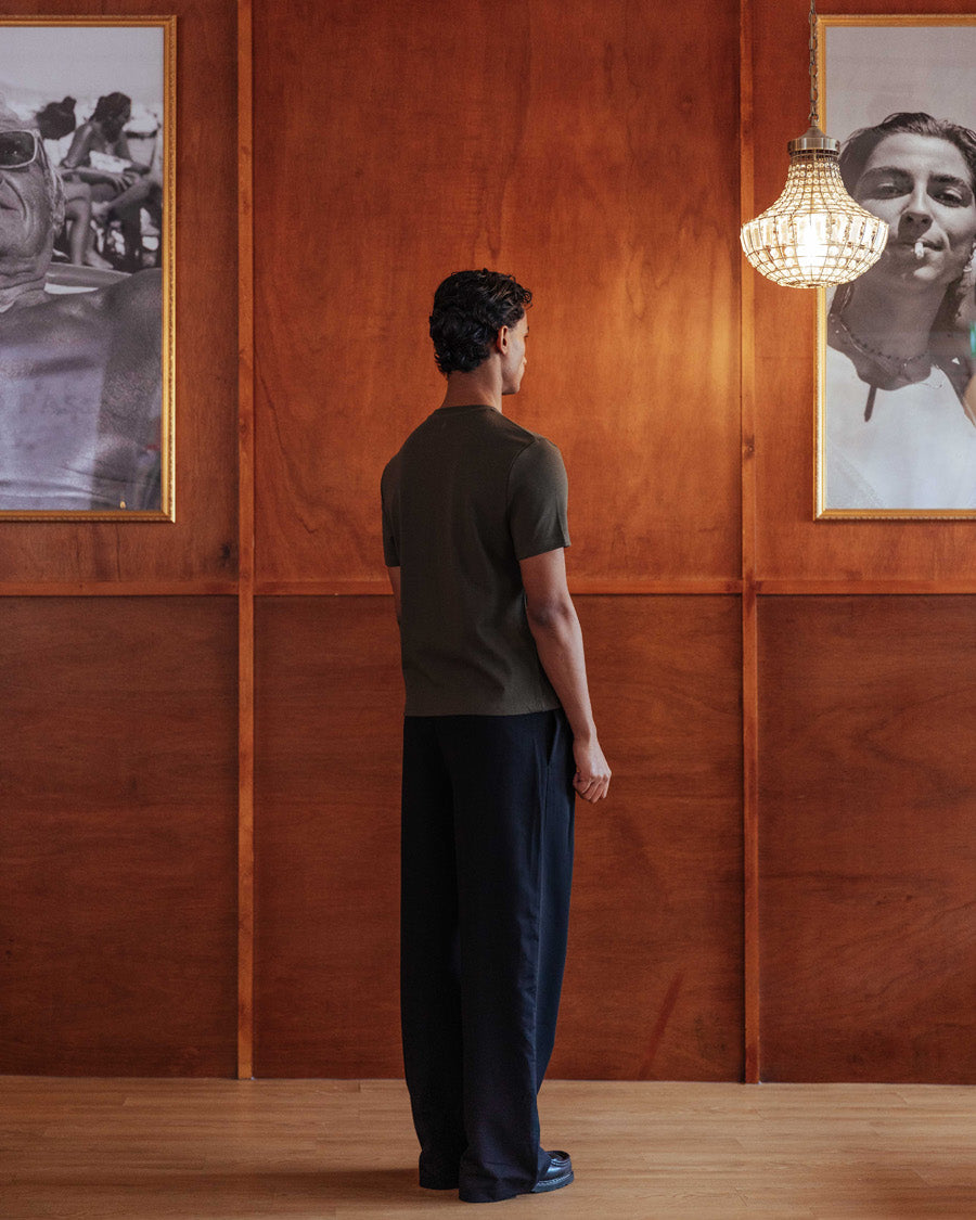 A slightly cropped tee inspired by the great Marlon Brando. Designed with a slim fit that contours the body, sitting neatly at the waistband with no tuck required. We apologise in advance that no other tee will compare.