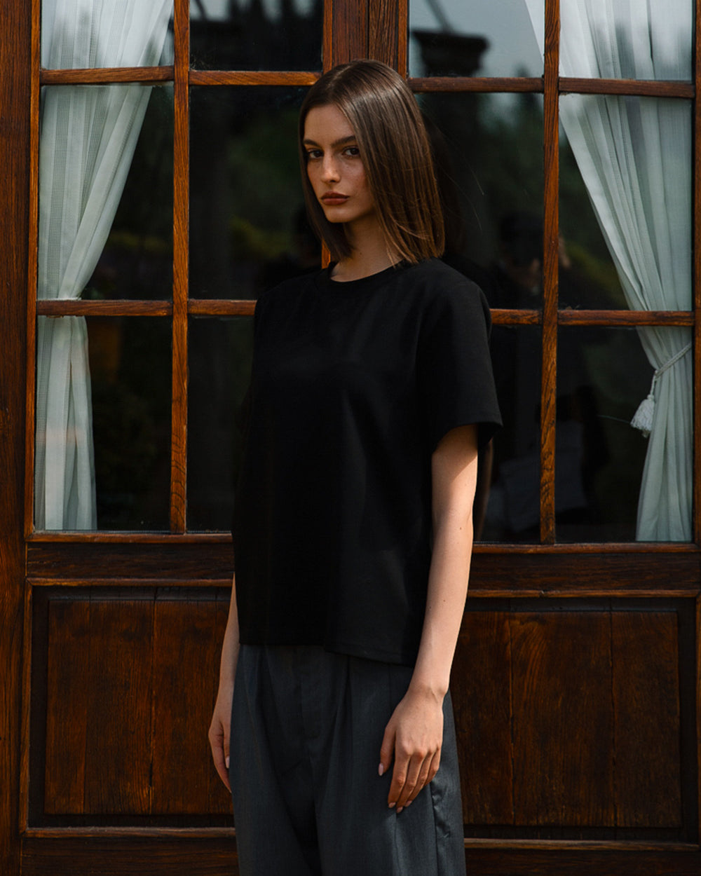 Daniel is literally the perfect cropped boxy tee. Designed to sit just above your waist with a slightly dropped shoulder and did I mention the material feels like you're being hugged by a silky smooth duvet?