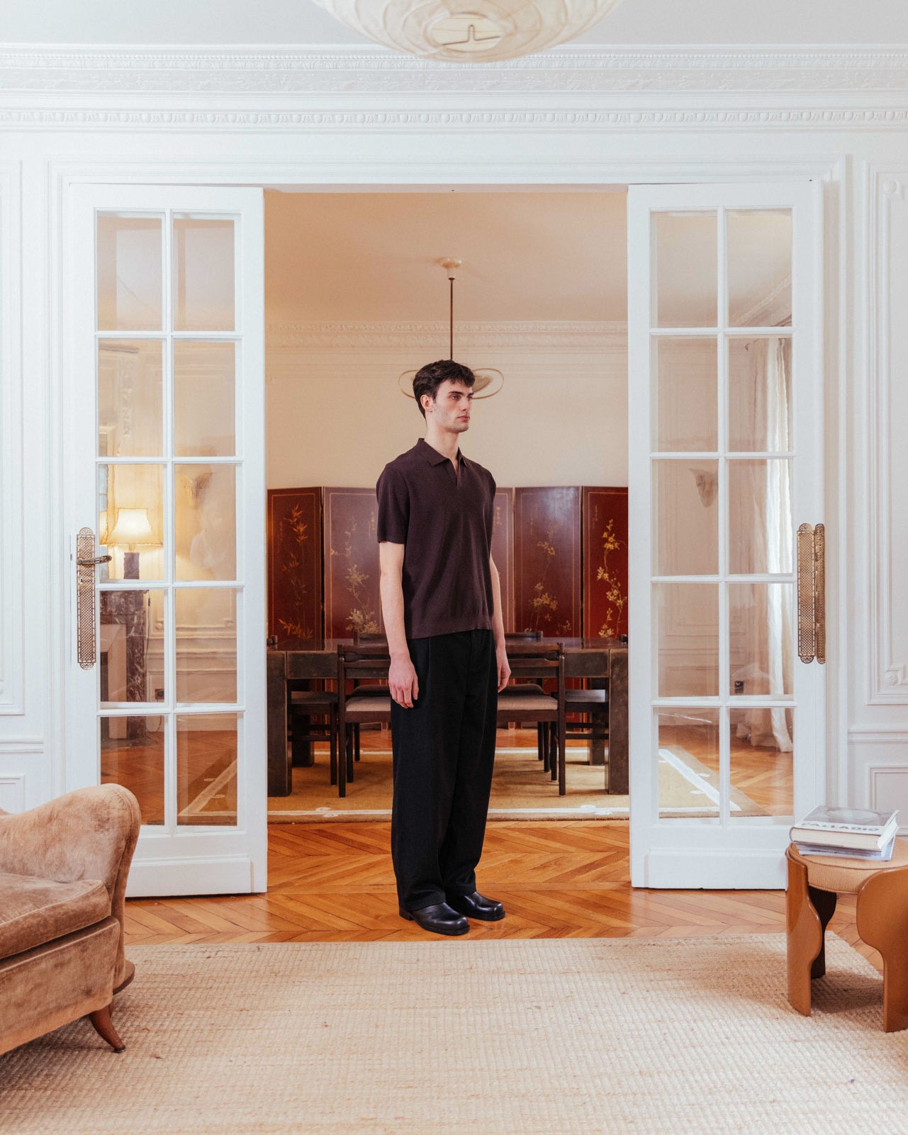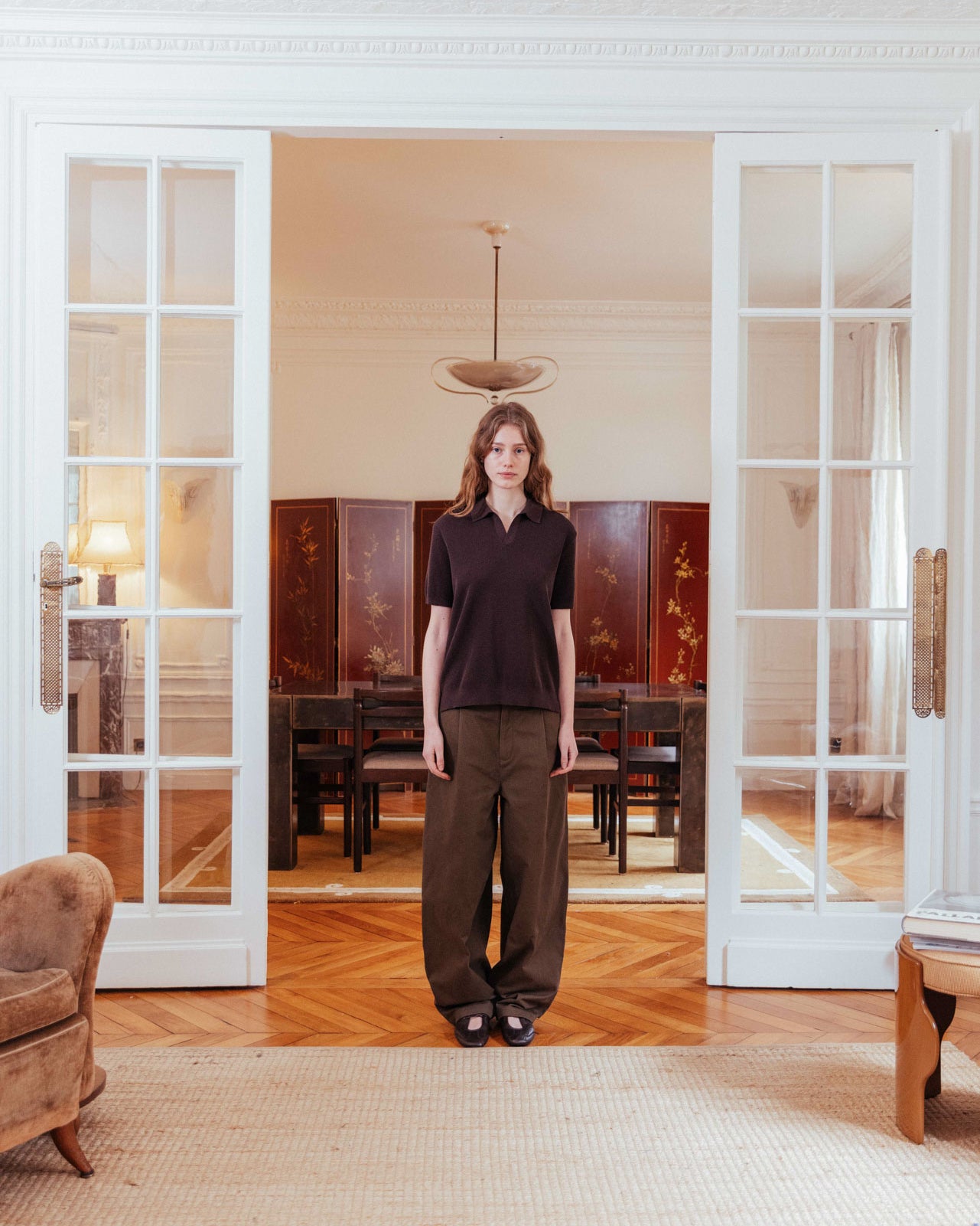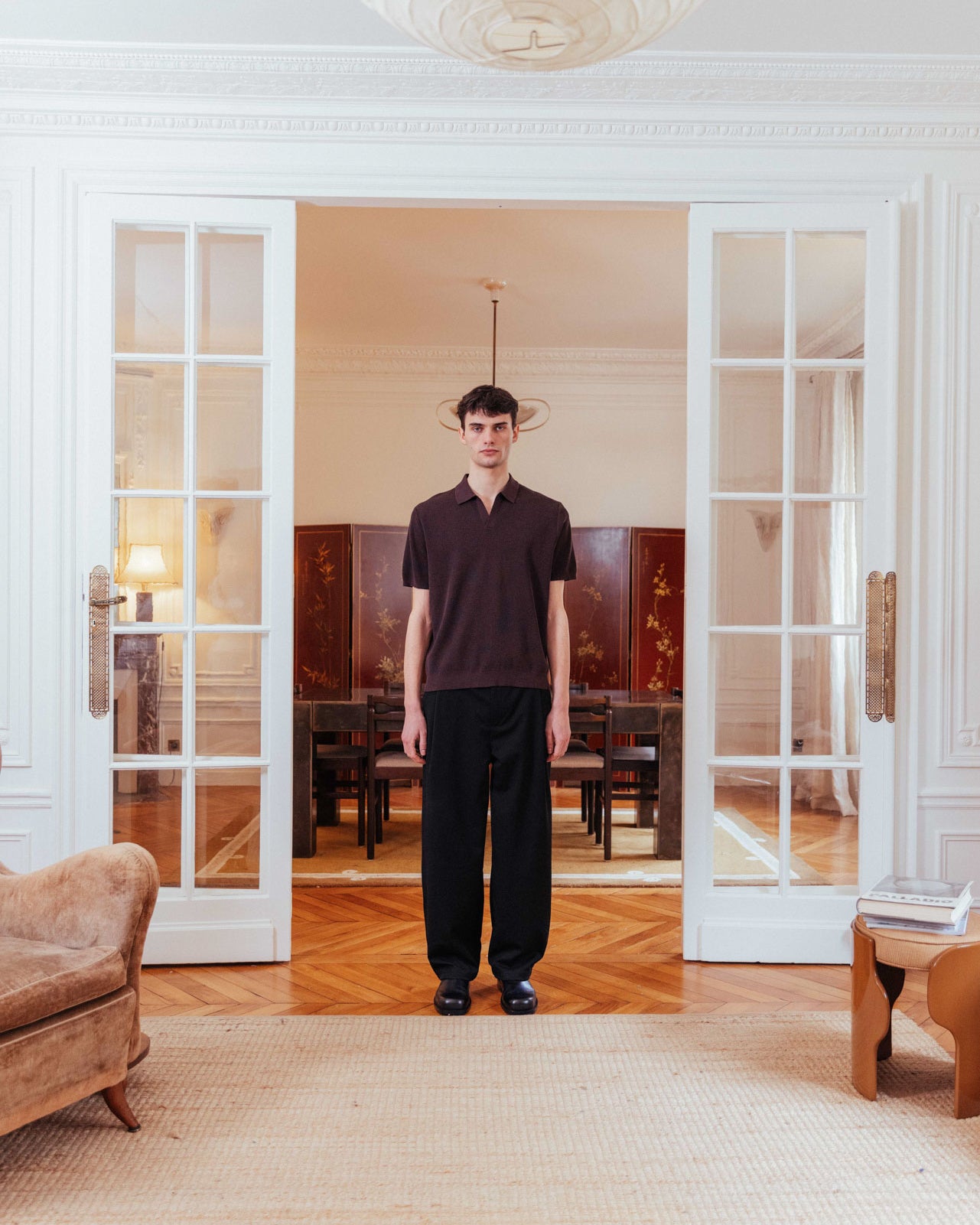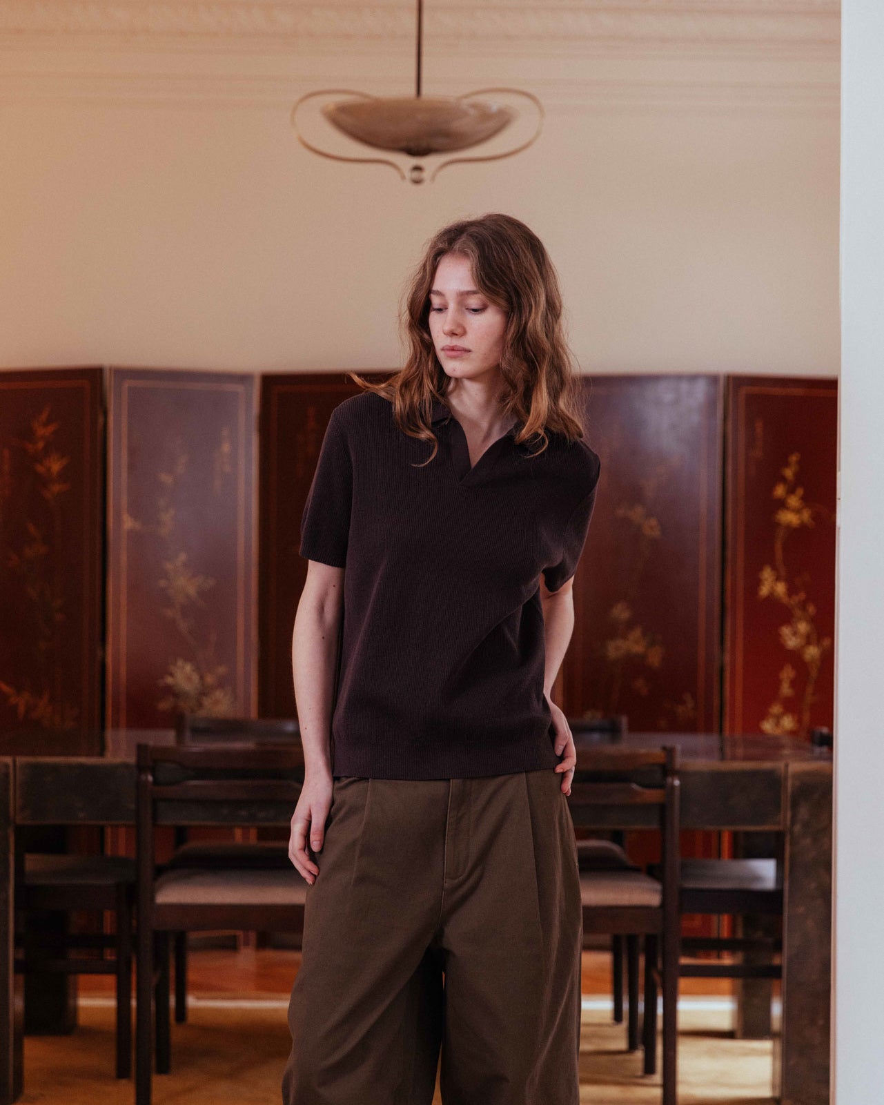 In a deep, powdery cocoa, this boxy polo melts over the body. Featuring a relaxed open collar, the lightweight ribbed knit is a timeless option for warm-weather styling.