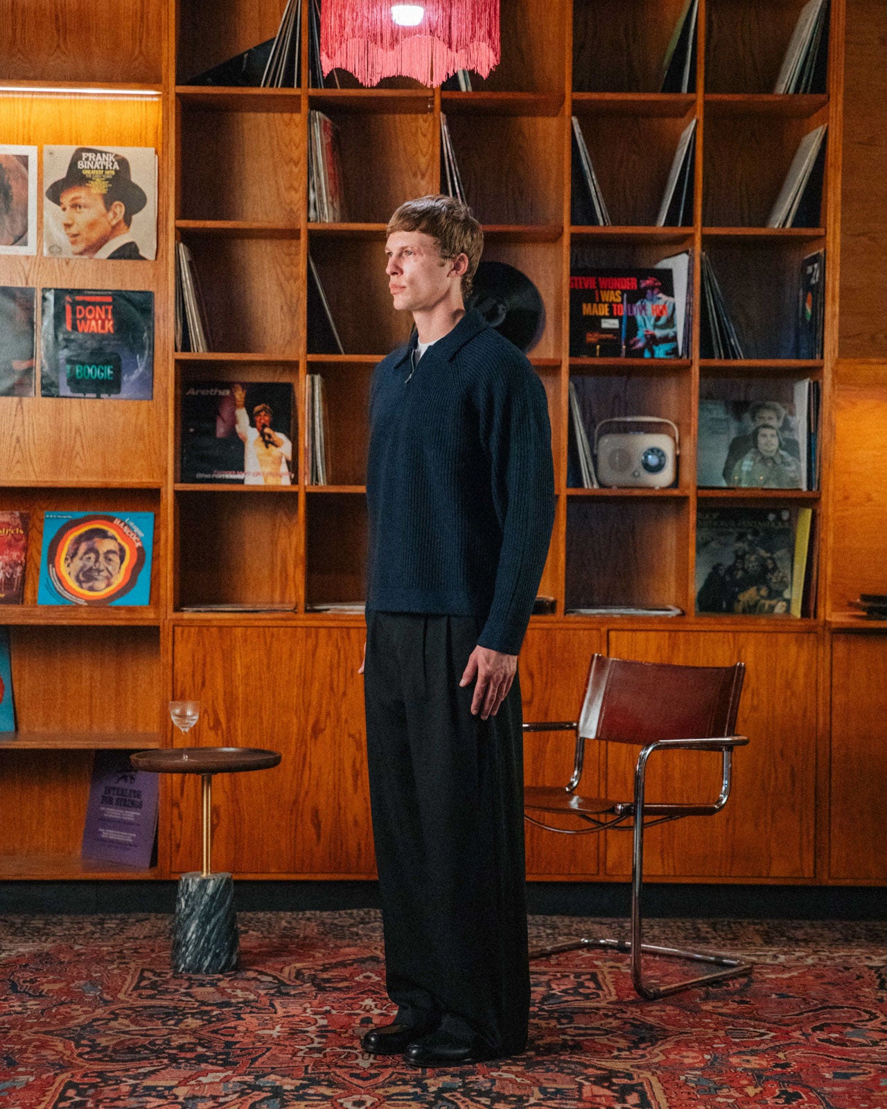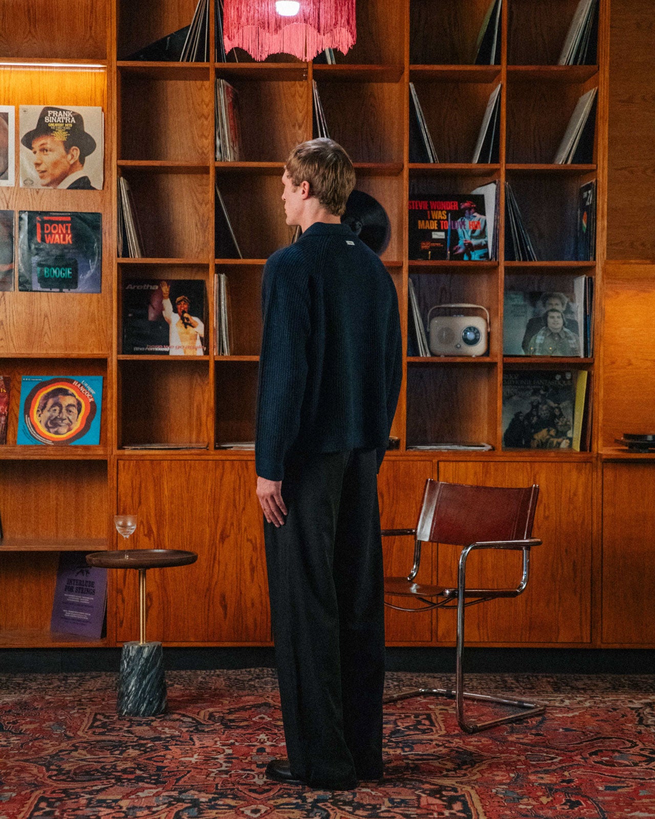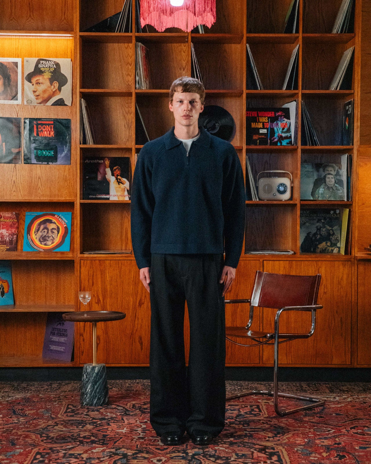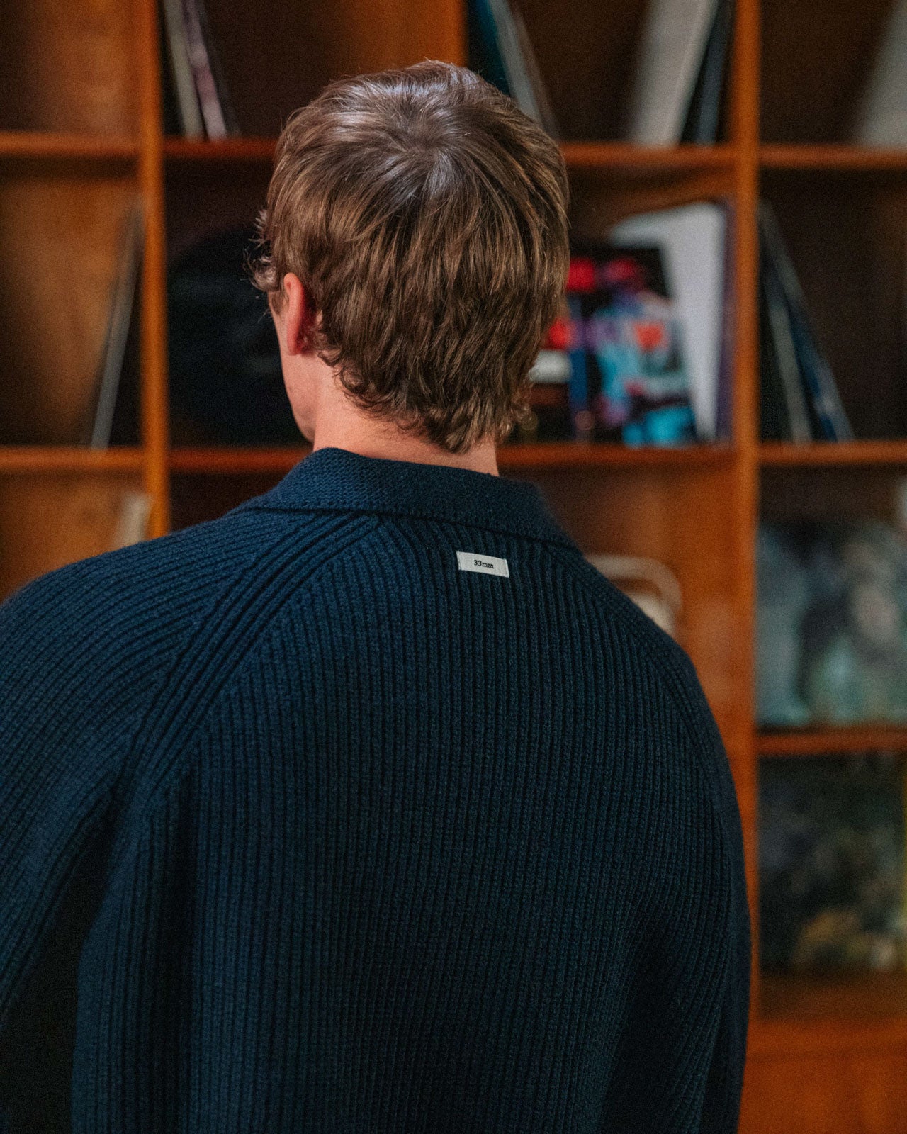 A layer that doesn't sacrifice the fit, but teases the tee underneath. A ribbed knit with raglan sleeves, quarter zip and relaxed collar. Complete with a custom branded zip and 33mm tab on the reverse.