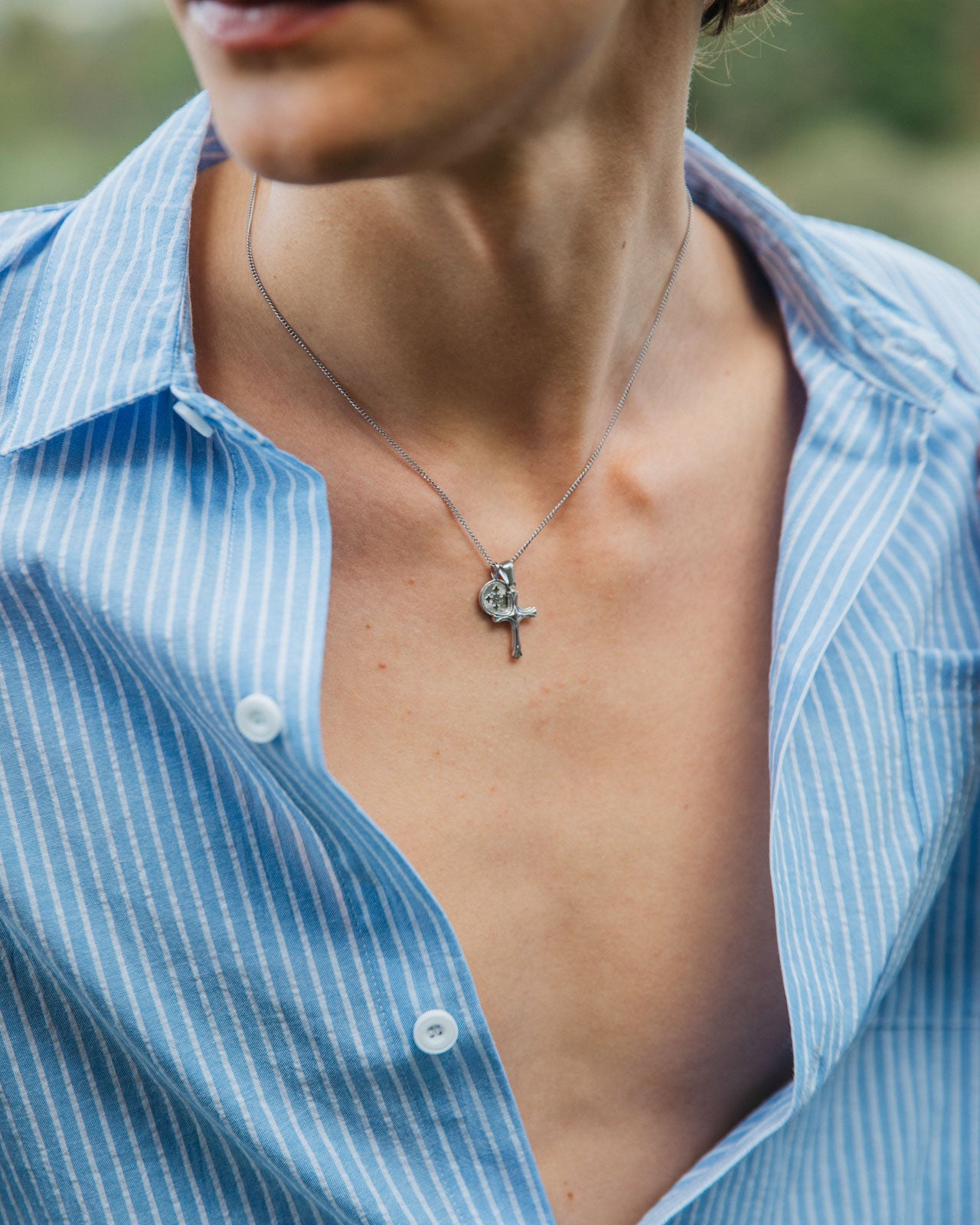 The antique you found hiding in your 19th century apartment. Featuring two cross pendants - their energy tells their story.