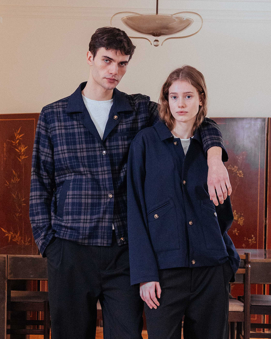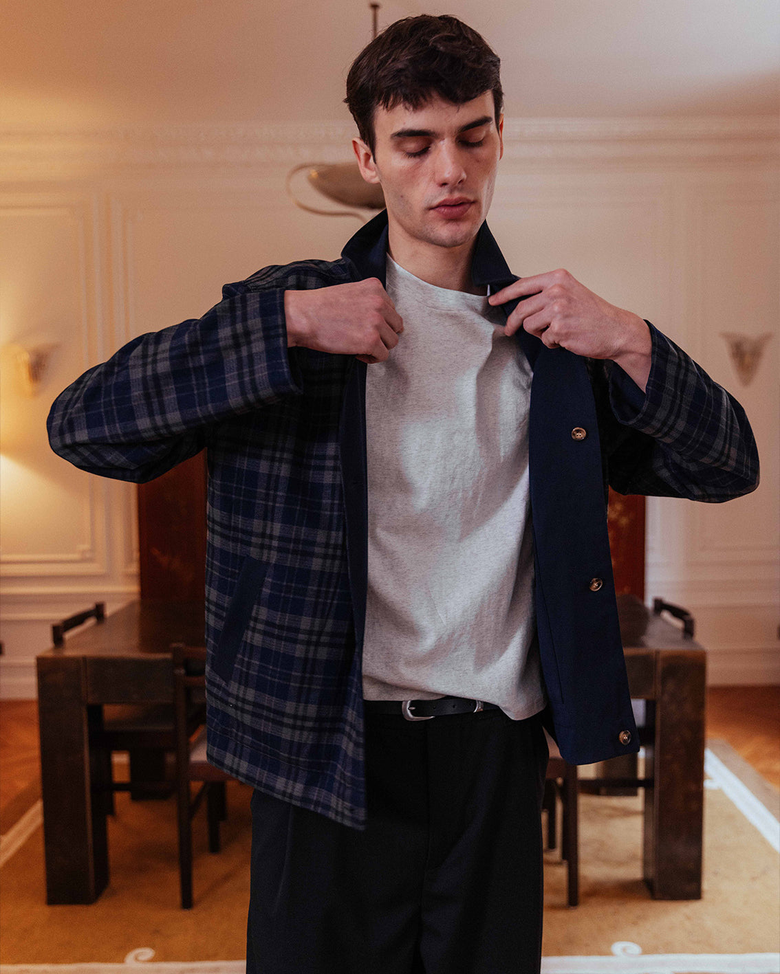 A fully reversible work jacket offering two looks in one, with the choice of a deep navy base or classic check. Welt pockets define the navy side, whilst we kept it simple on the check to let the print sing.