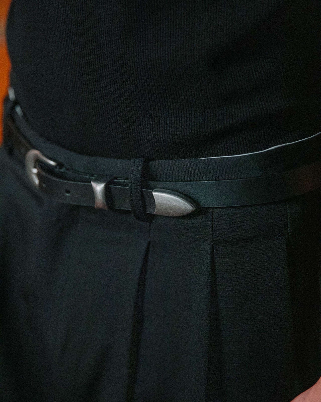 A thin western inspired belt with antiqued silver hardware across its pin buckle closer, keeper and tip. Crafted from 100% leather so you can look forward to a time-worn finish in years to come. Delivered in a branded dust bag for safekeeping.