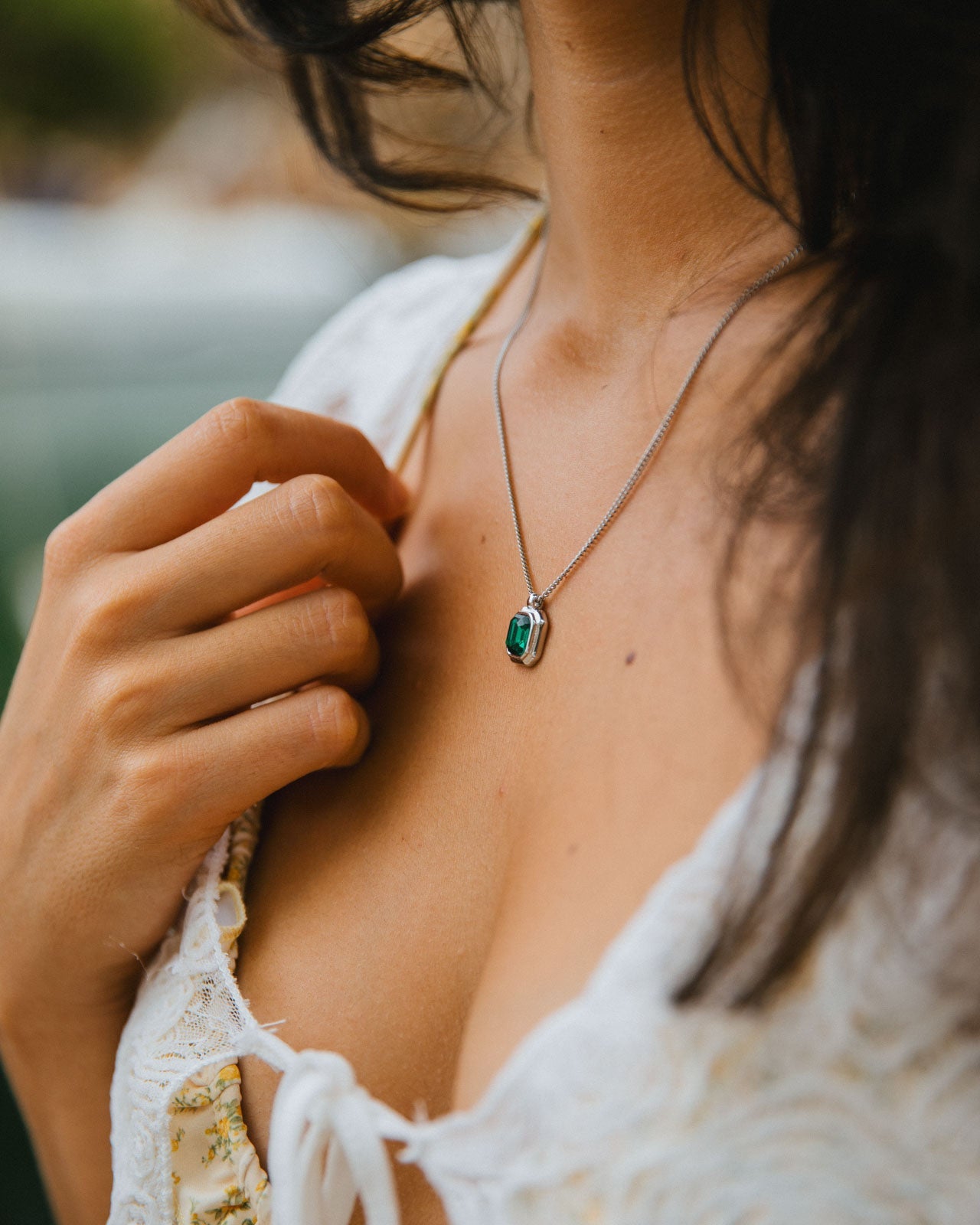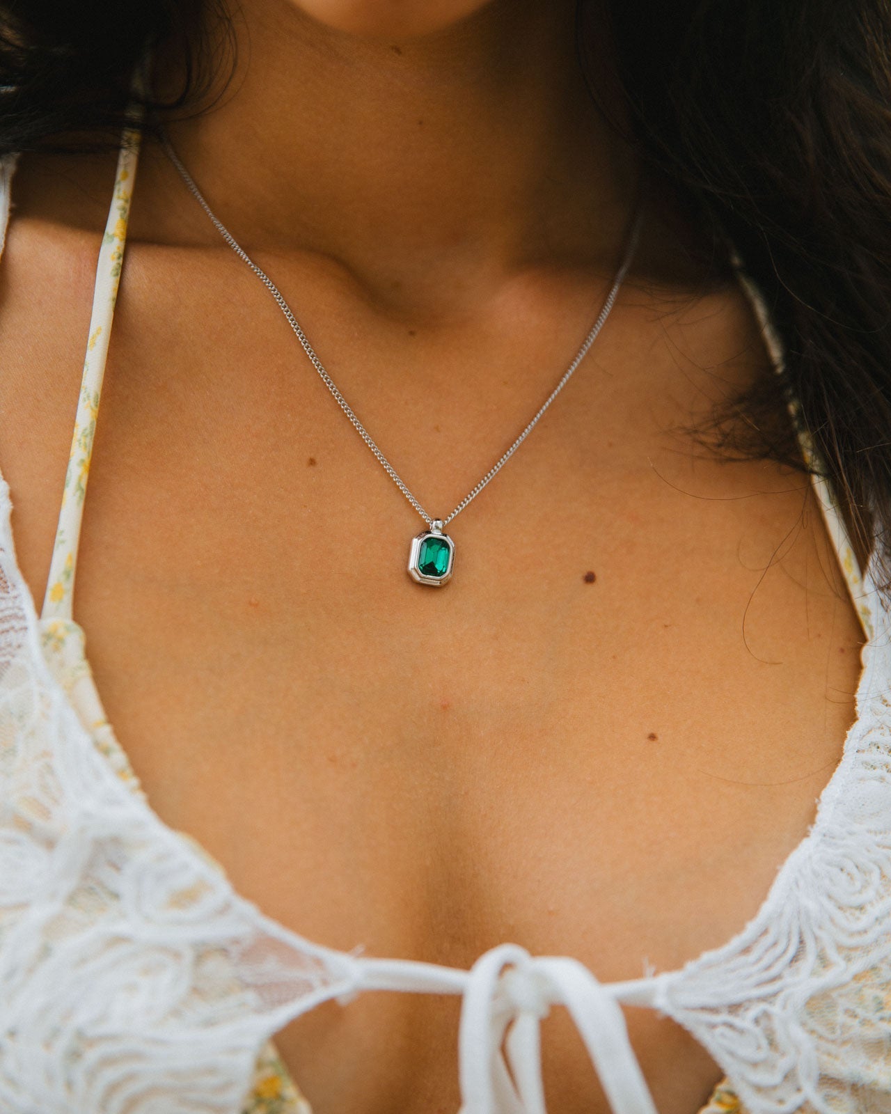 Idris Necklace, Silver/Green