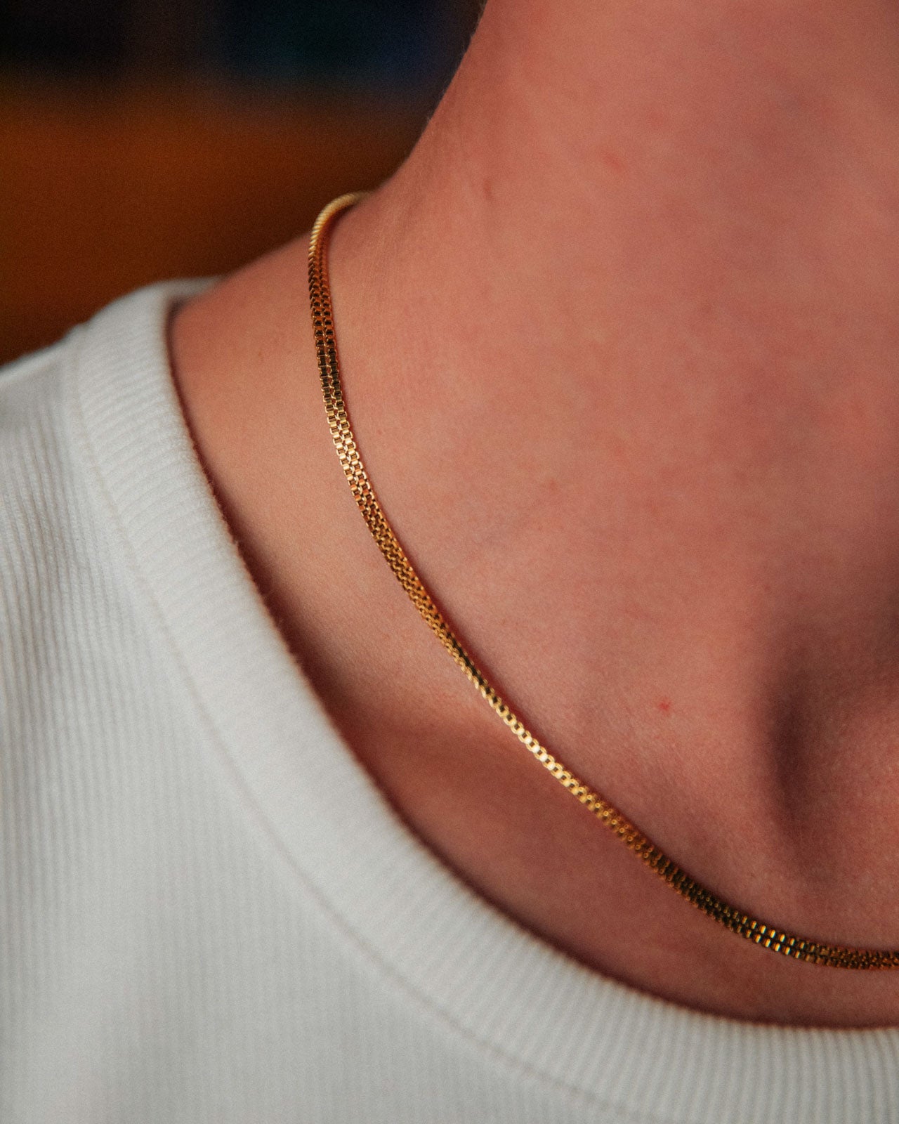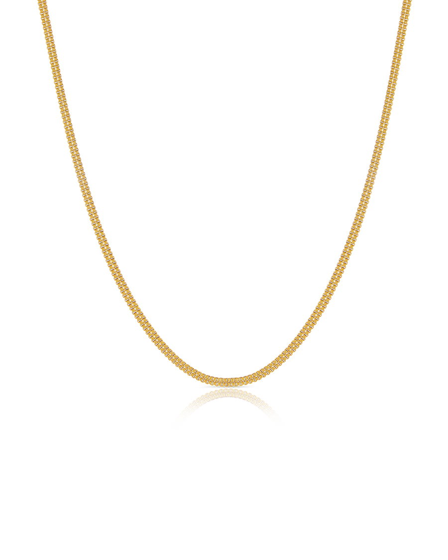A double box chain necklace that proves gentle is powerful. For those who prefer to make more of a statement of their chain, or enjoy different depths and textures to layer with.