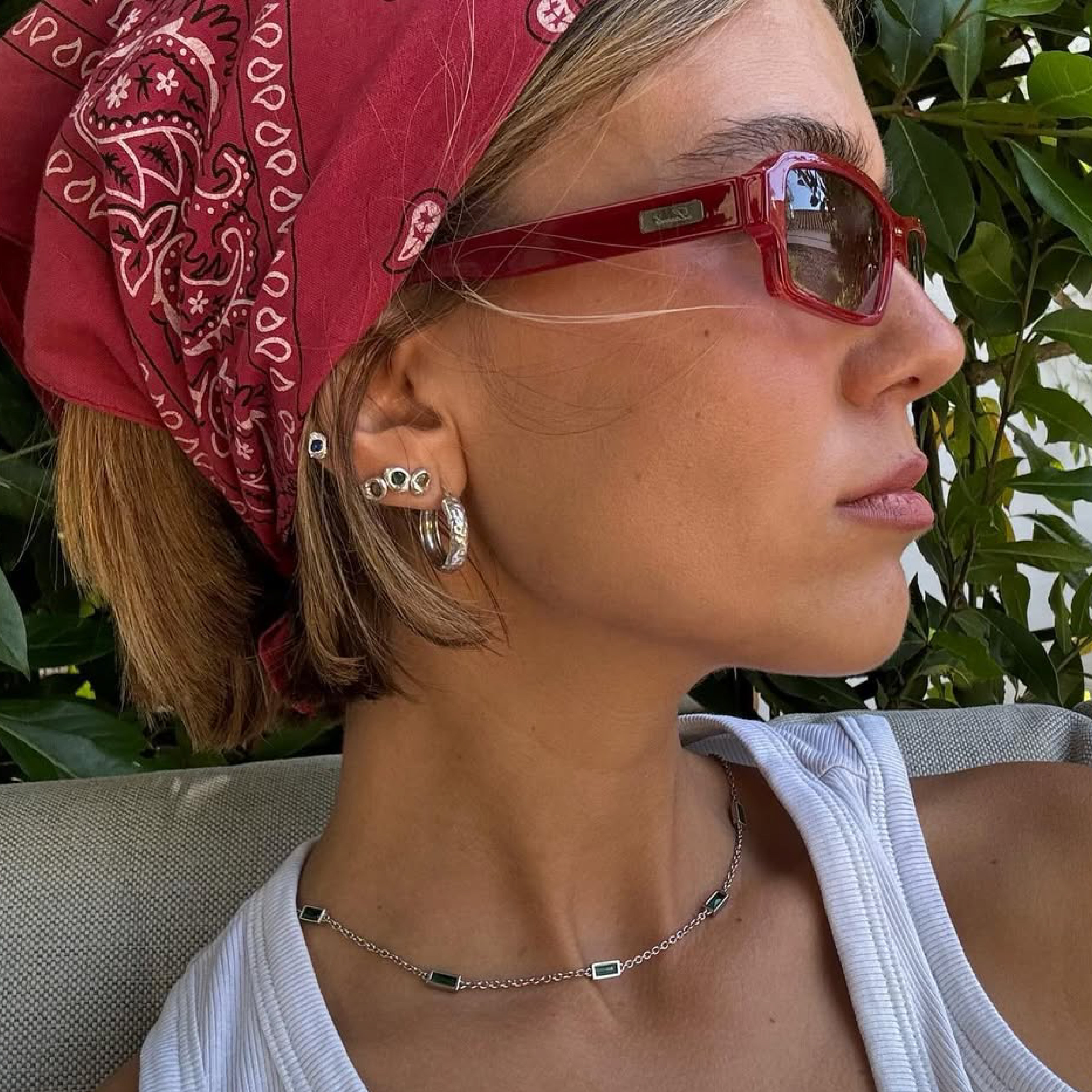 Designed to be noticed, Jonah will have people double taking when you walk past. It features our signature emerald green Cubic Zirconia gemstones and can be paired with the Mathias bracelet for extra impact.