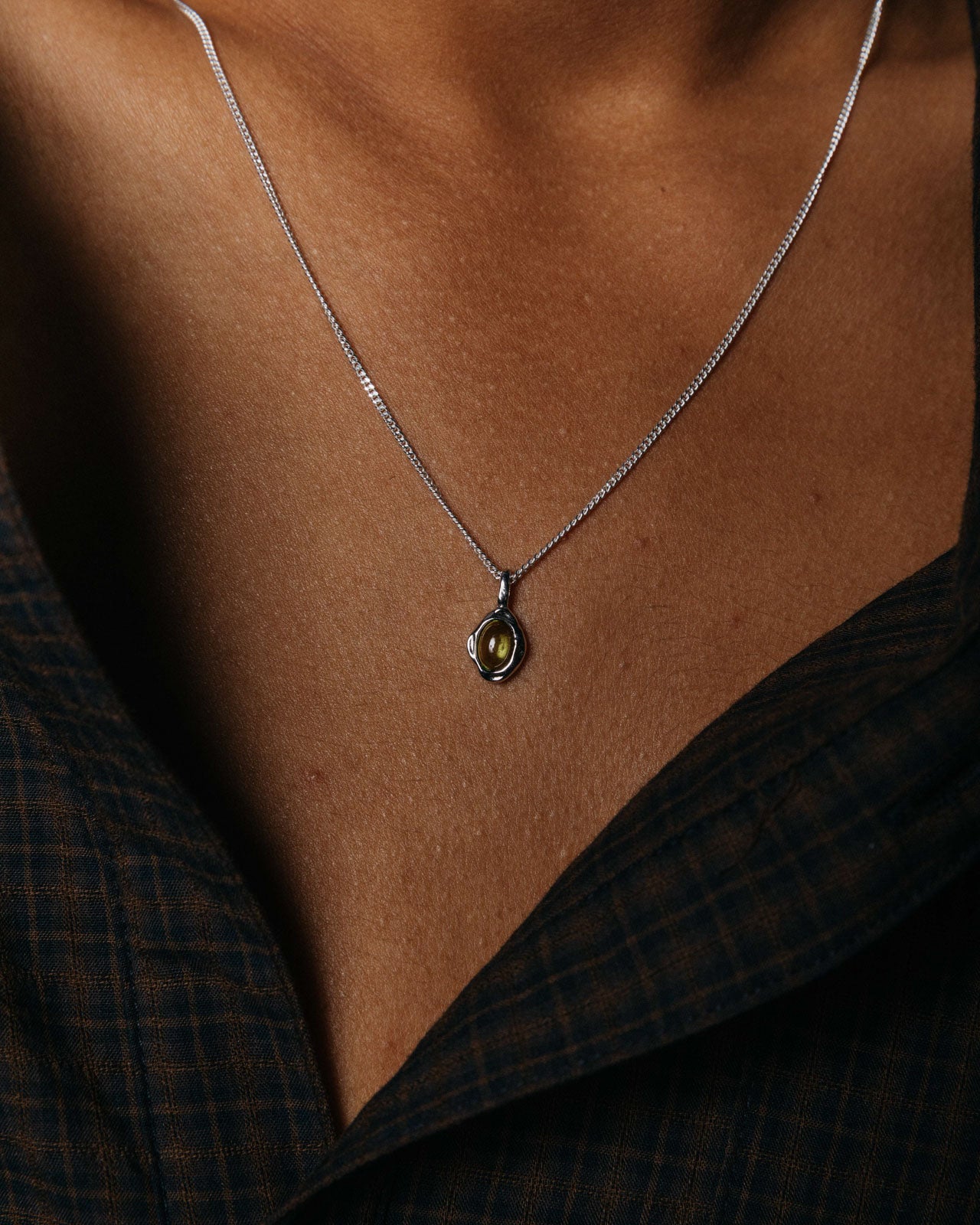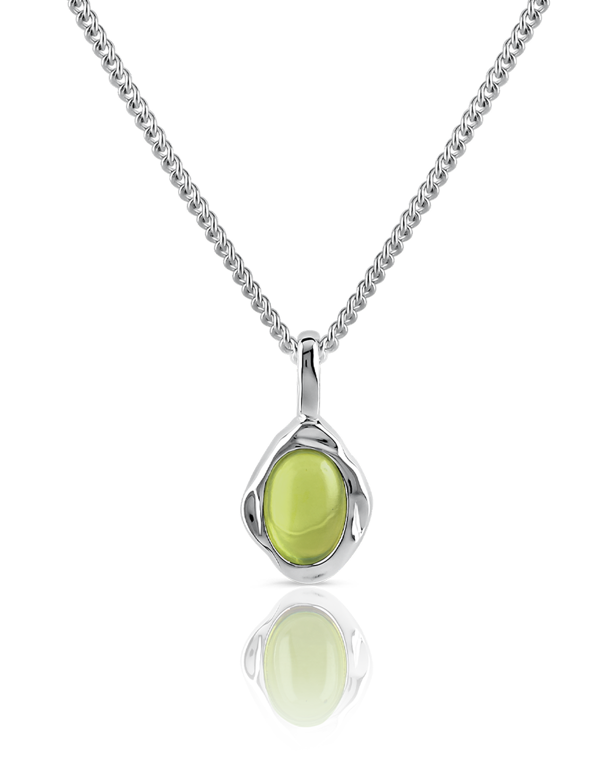 A drop of elegance, adorned with natural Peridot stone set in a Sterling Silver molten frame. Starring a natural peridot stone, designed for everyday wear and endless sparkle.