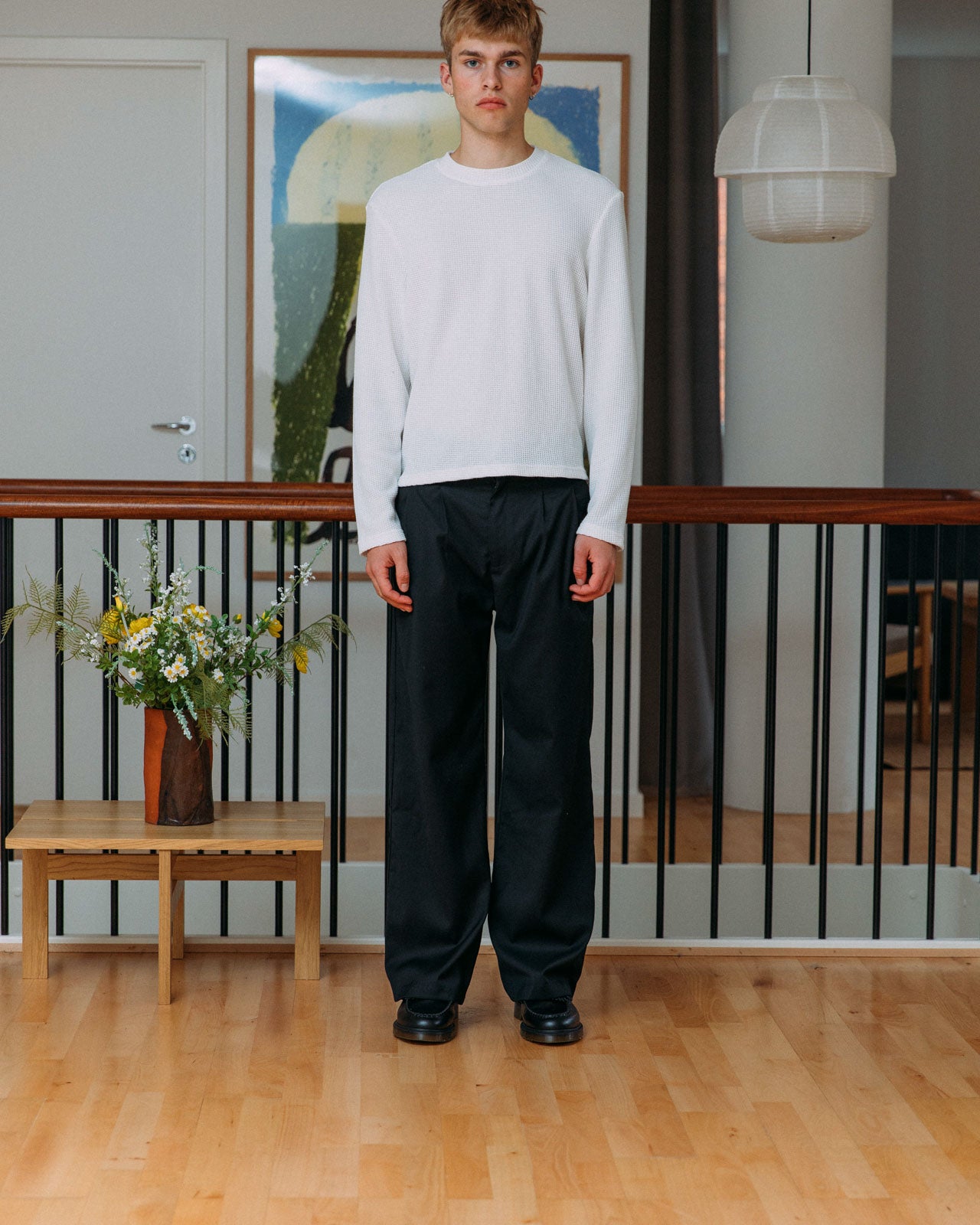 An elevated version of your standard long sleeve tees. Crafted from 370gsm knit fabric adding a touch of luxury to your wardrobe. A versatile piece that can be worn on its own or as a foundation for layered looks.