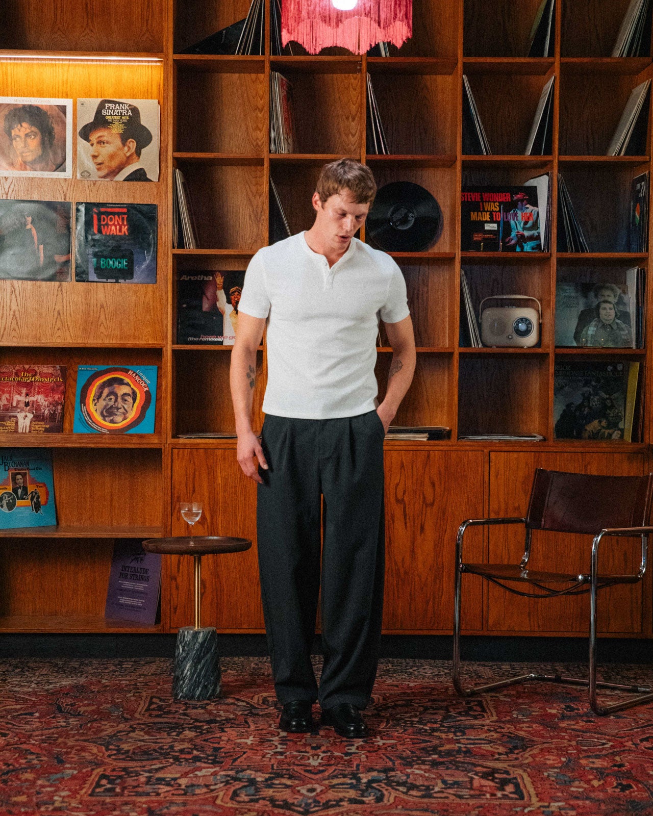 The waffle henley of a '90s actor straight off set. Nils skims the body with its slim fit and slight crop for a shrunken look. With the waffle texture continuing around the openings, it's a sleek layering piece beyond your average basic.