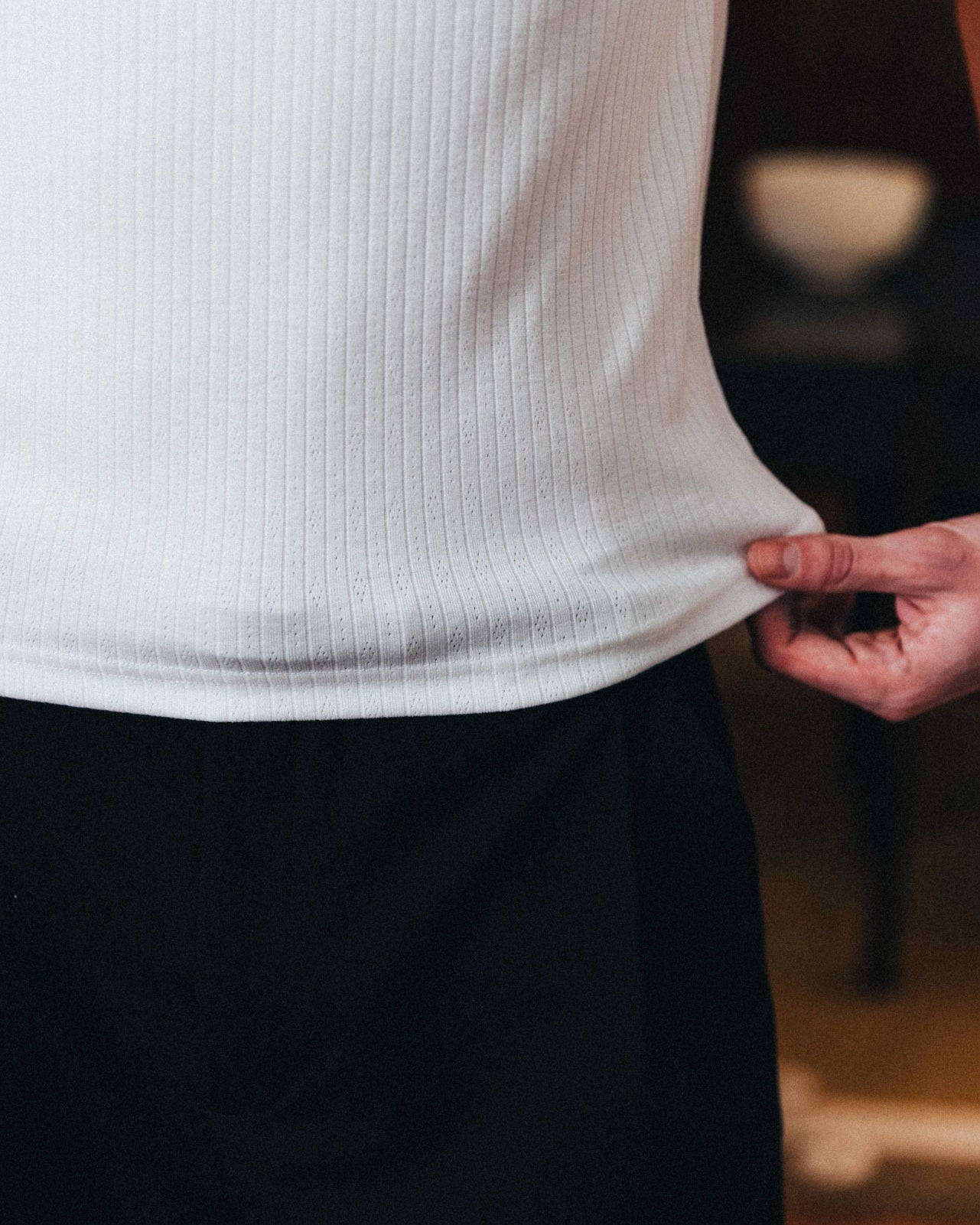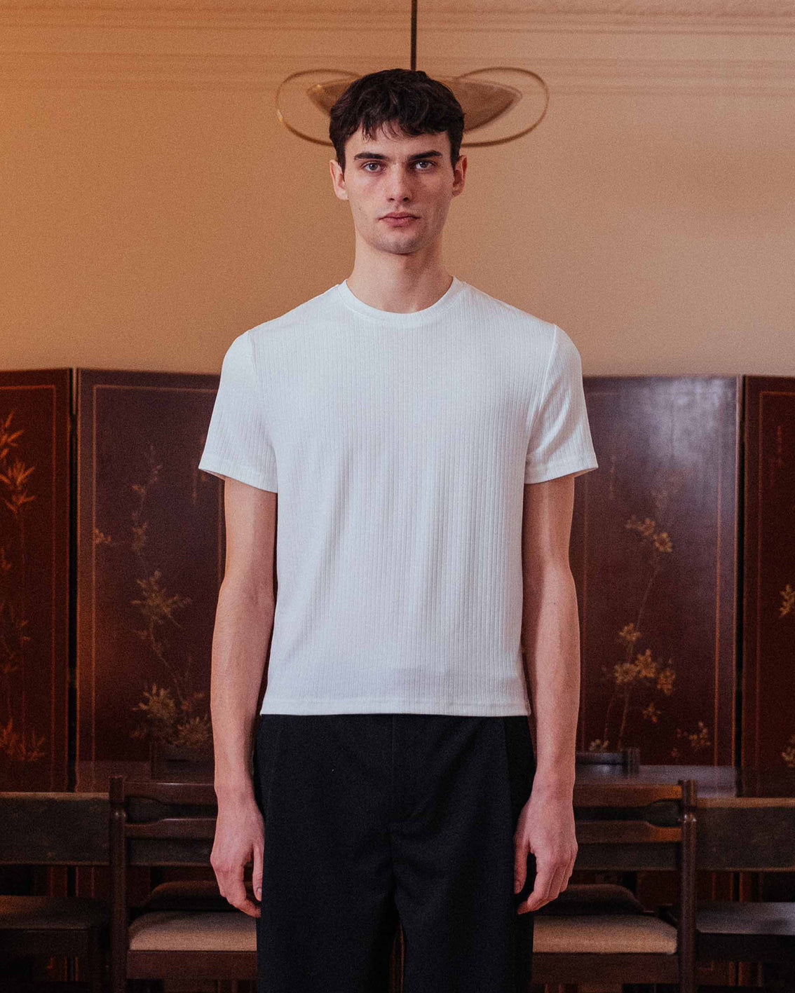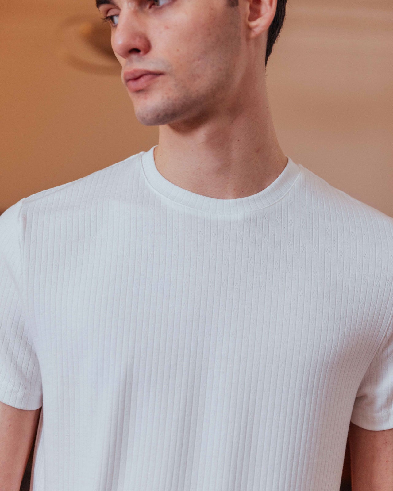 Introduce subtle intrigue to your basics with the delicate pointelle texture of Tyler. Favoured for its soft-touch feel, this tee drapes effortlessly over the body, making it the perfect base layer.